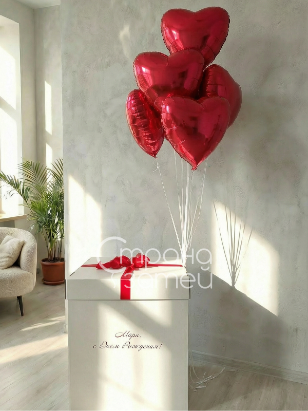 • Наполнение: 5 фольгированных шаров-сердец 18″