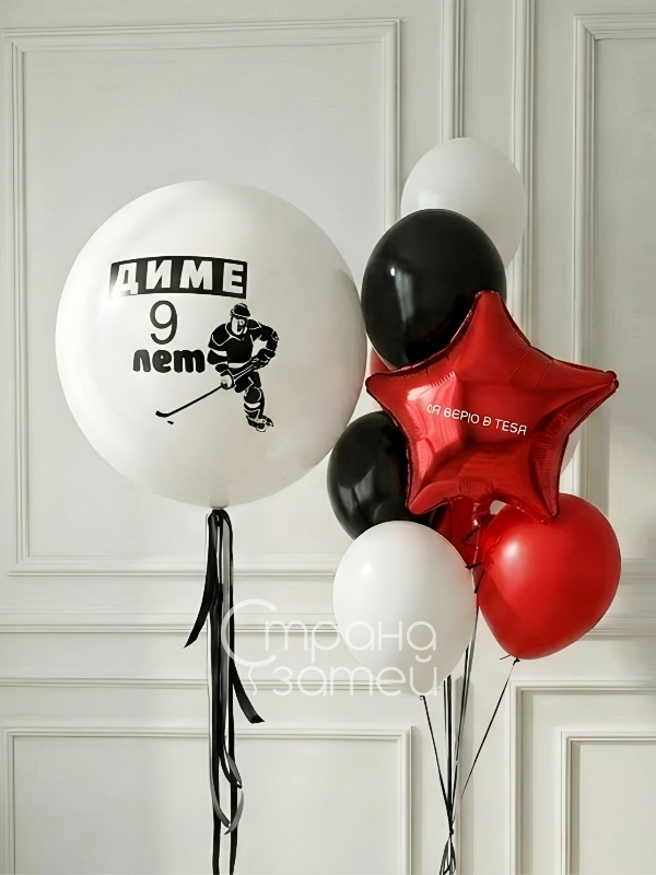 Стильный сет для мальчиков: большой Двойной шар-гигант с надписью и фонтан со звездой создают яркий акцент на празднике и классно смотрятся на фото. Надписи можно сделать любыми, а цвета — подобрать под вашу тему.