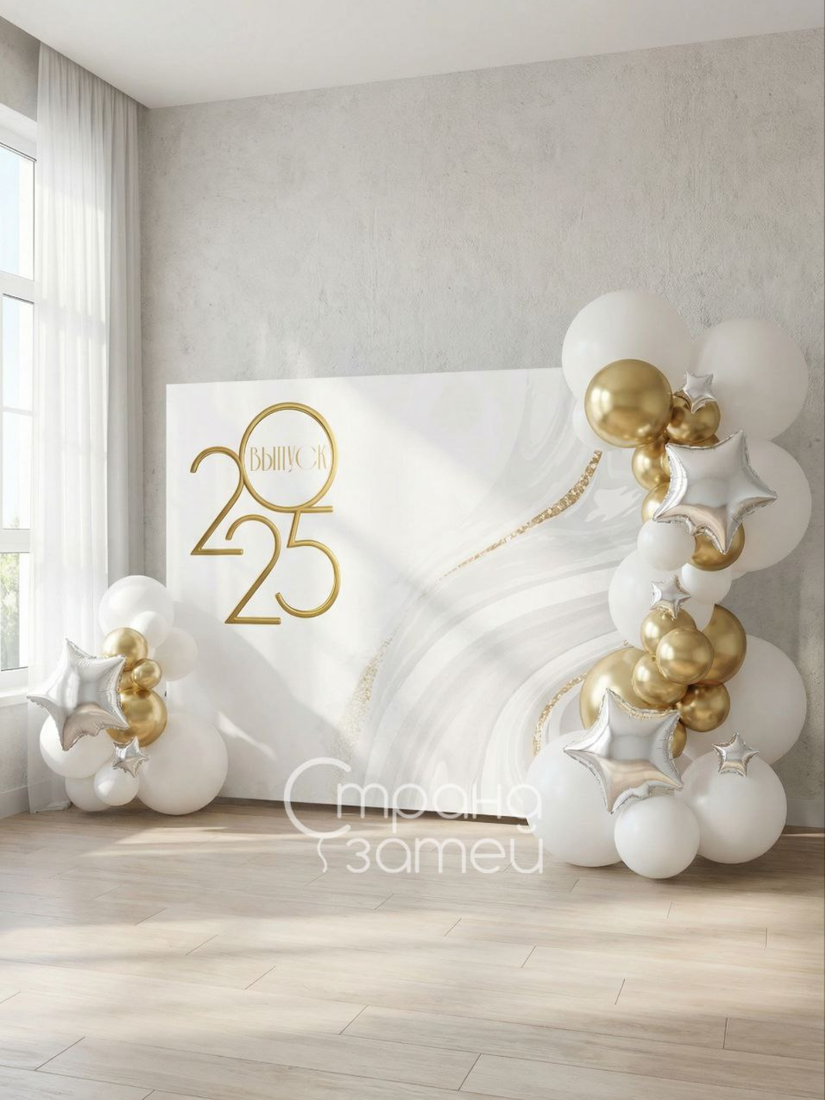 <p>🧾 Состав сета:<br> • Баннер 3×2,1 м<br> • Оформление шарами (белый, золото хром)<br> • Фольгированные звёзды (серебро)<br> • Общий размер фотозоны 4,5×2,4 м<br> </p> <h2><strong>Фотозона на выпускной в бело-золотом стиле</strong></h2> <p>«Белое золото» — светлая, торжественная фотозона для красивых кадров на празднике. Отлично подходит <a href=»https://stranazatey.ru/vypusknoj-shkola/»>на выпускной в школе</a> и как готовое решение из раздела <a href=»https://stranazatey.ru/oformleniya-i-fotozony/»>оформления и фотозоны</a>. Гамму, надписи и состав можно изменить. Монтаж и демонтаж входят в стоимость, доставка рассчитывается по адресу.</p>