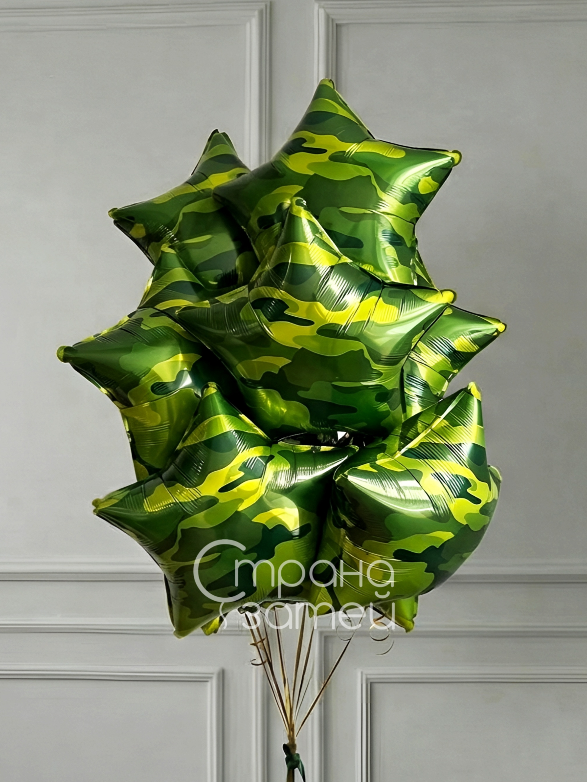 Камуфляжный фонтан из звёзд создаёт праздничное настроение и эффектно смотрится на фото в интерьере дома и офиса.