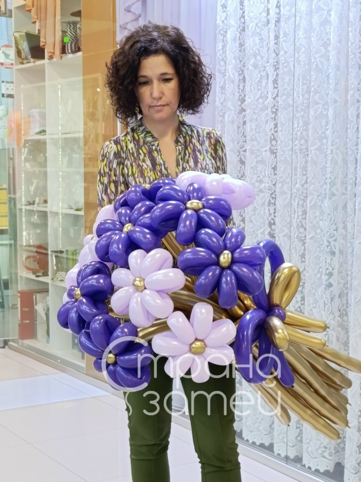 Букет из шаров «Фиалковое настроение» — необычный и долговечный подарок, который станет красивым знаком внимания для неё и отлично подойдёт на 8 Марта, день рождения или другой приятный повод. Количество цветов, оттенки и упаковку можно изменить по вашему желанию.