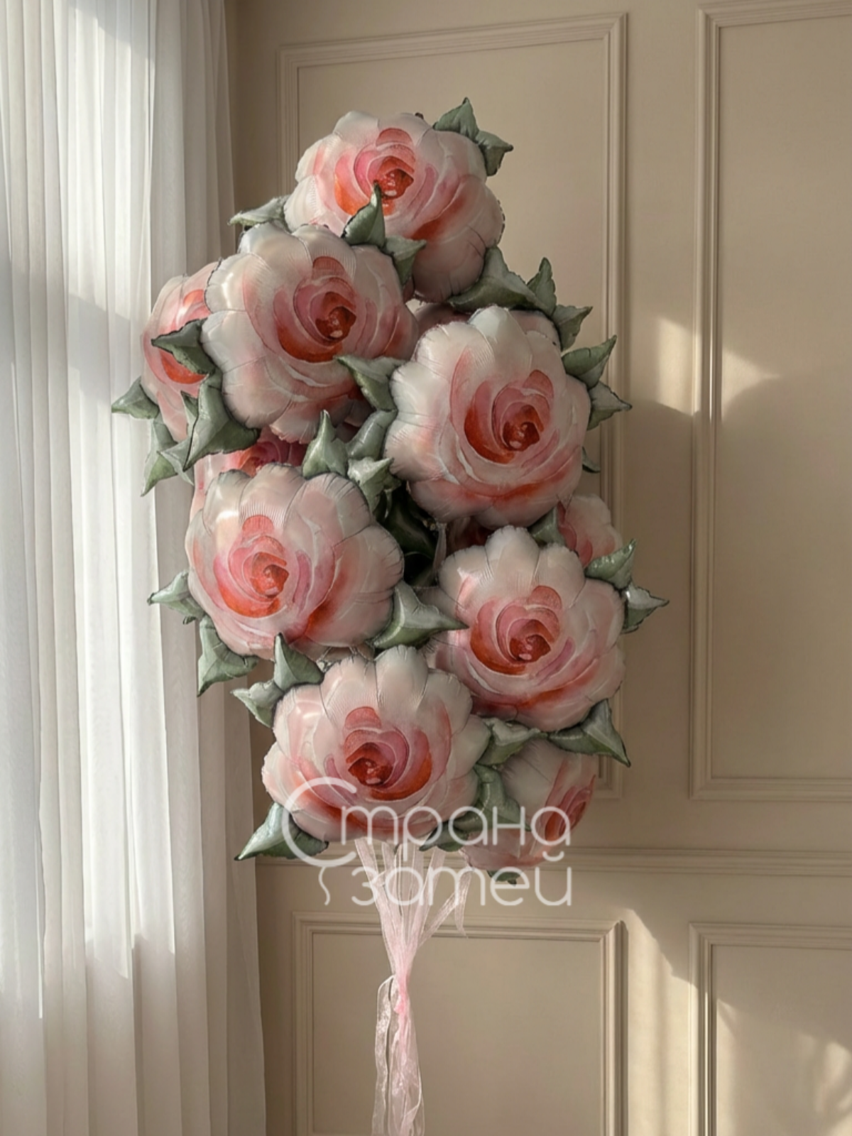 Фонтан из 10 фольгированных шаров‑роз. Красивое оформление для дня рождения, 8 Марта и романтических событий. Доставка и самовывоз по Нижнему Новгороду.