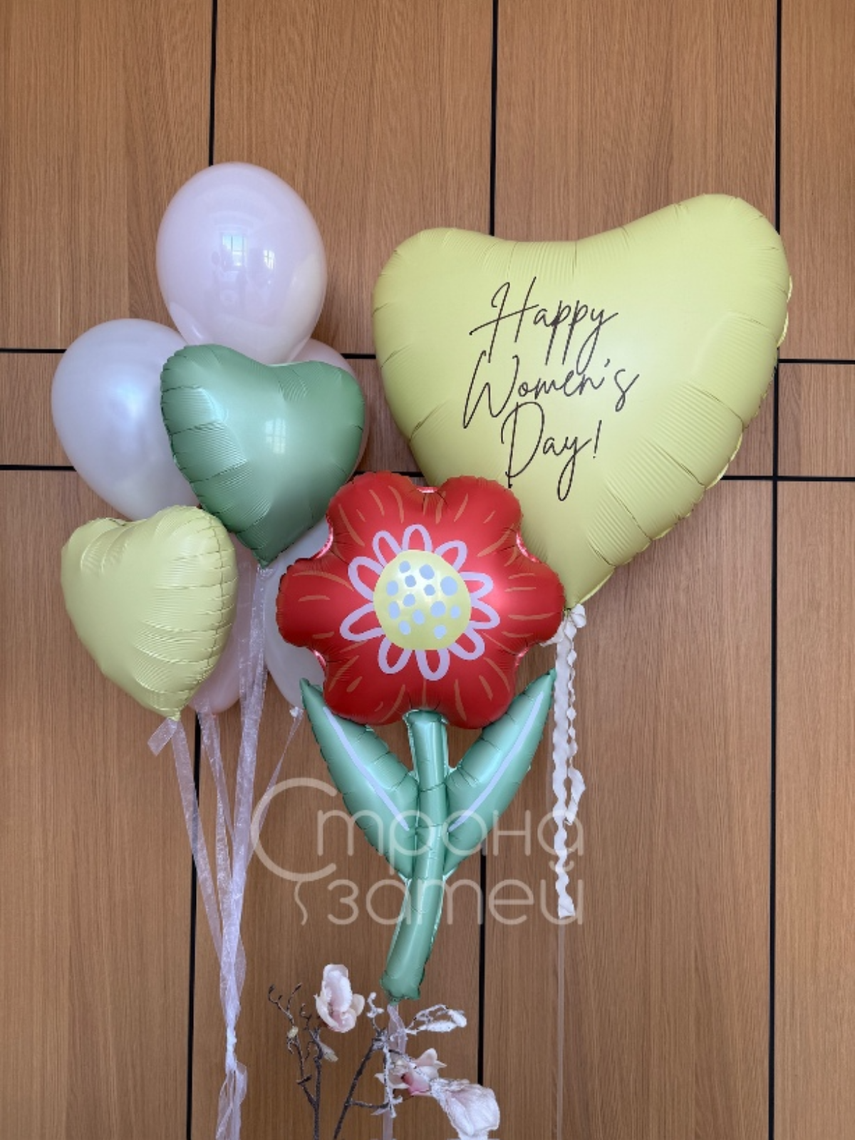 Нежный сет с большим сердцем и фигурой цветка станет весенним комплиментом на 8 Марта и милым подарком для неё, который ярко смотрится в интерьере и на фотографиях.
