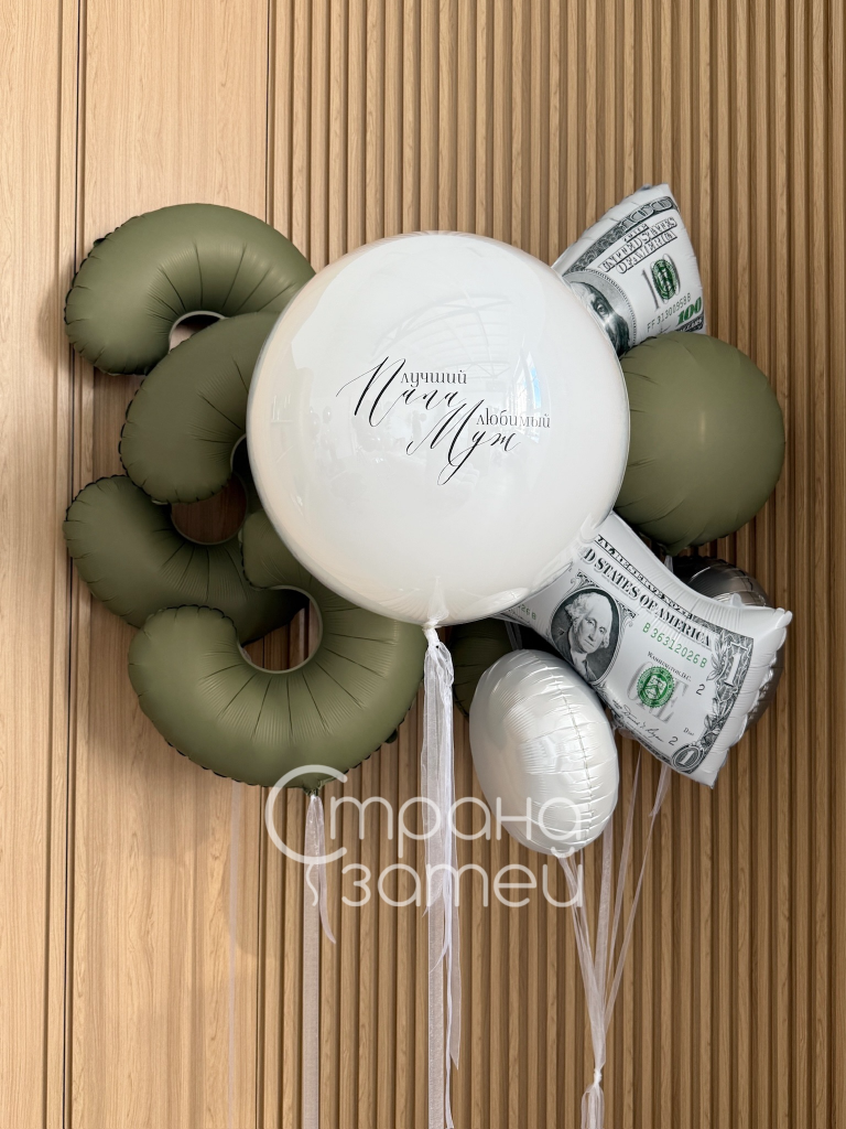 - Фонтан из 7 шаров: 5 кругов 18″, 2 фигуры Доллар