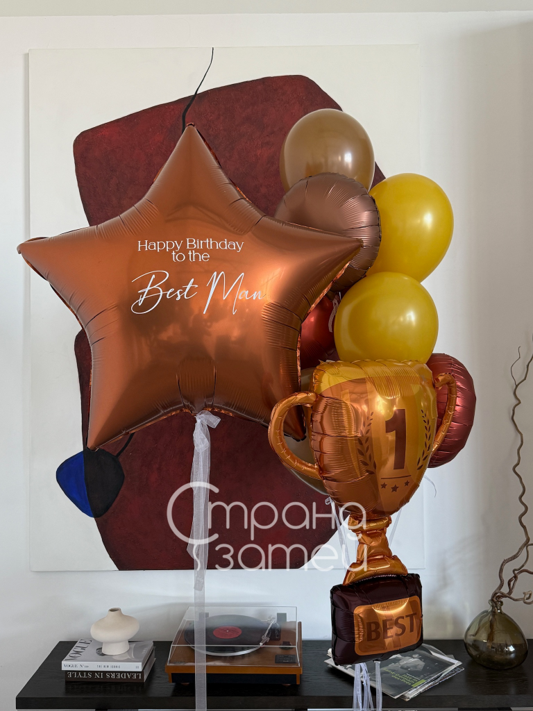 - Фонтан из 10 шаров:6 пастель, 4 круга 18″