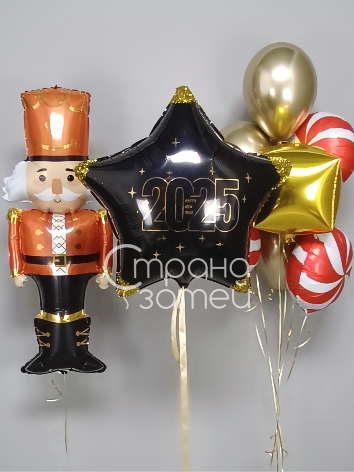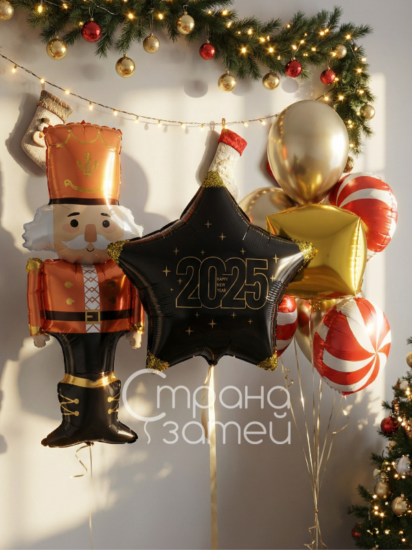 - Фонтан из 7 шаров: 3 хром, 3 круга 18″, куб 3D
