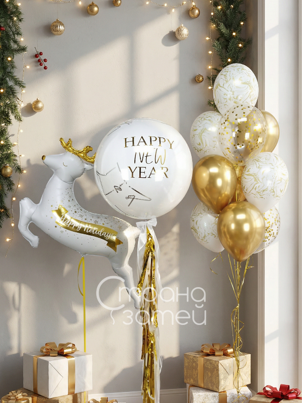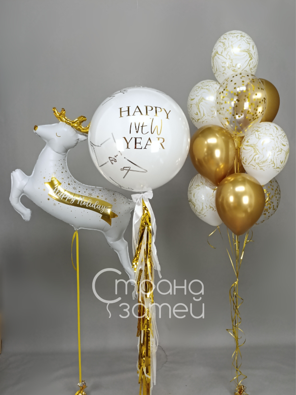 - Фонтан из 10 шаров: 4 хром, 4 с рисунком, 2 с конфетти