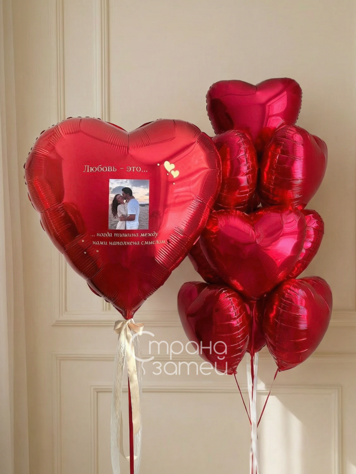 Алый фотосет с большим сердцем с вашим фото и облаком сердец — очень личное признание в любви и яркие кадры на 14 февраля.